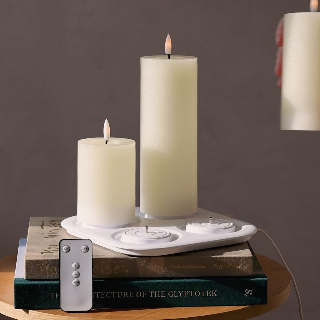 This is a complete “hygge” package with LED light, charging plate and remote control.